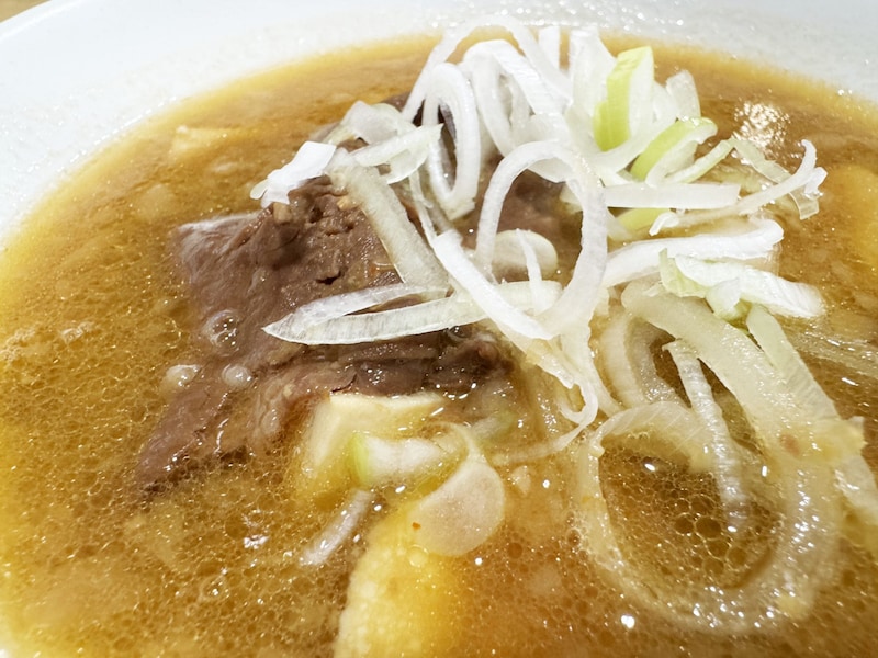 アツアツの米沢牛モツ煮込み。かなり熱い。店員さんが「熱いです」とアドバイスしてくれるぐらい熱い。事実、熱いので、米沢牛を堪能しつつちょっとだけ時間をおいて、若干おだやかな温度になったモツ煮込みを食べる。