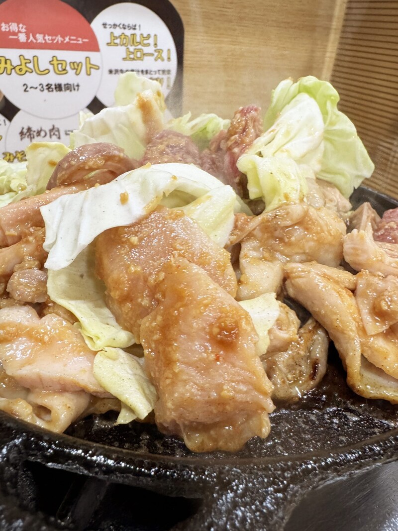 焼肉みよしの主人公は米沢牛かもしれないが、もうひとりの主人公はキャベツだと思っている。焼肉を焼きつつ、そこからあふれ出た肉汁と脂をたっぷりとまとったキャベツは、肉にも負けないおいしさに昇華する。