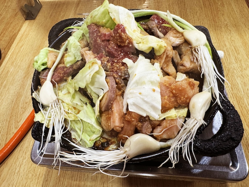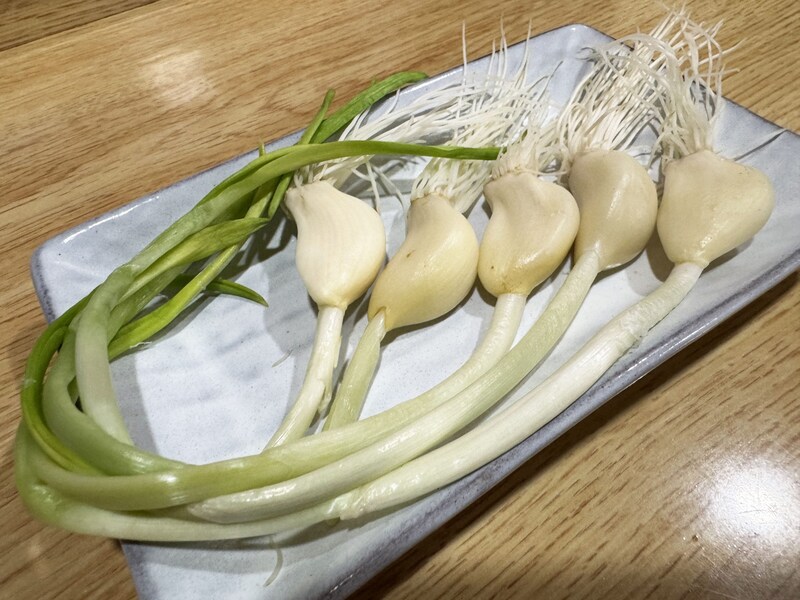よりおいしく食べたいなら、オススメの追加すべき具がある。それが「つのにんにく」。芽が出ているニンニク。つのにんにくにも、おいしい焼き方が存在する。まず、みそミックスを鉄鍋にのせる。次に、みそミックスを囲むように、つのにんにくを置く。良い、良すぎる。何が良いかって、カルビとホルモンをミックス状態で食べられる点。しかも米沢牛のカルビな点。なにより、うまい点。つのにんにくとともに肉を食べると究極的に美味。