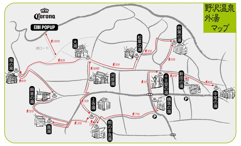 集印帳は、野沢温泉観光案内所や商店街のお土産店で購入可能。イベント期間中に、合計3か所・7か所・14か所の集印を集めると、コロナ セロやコロナビールのオリジナル手拭いなどがもらえるキャンペーンも実施中です。