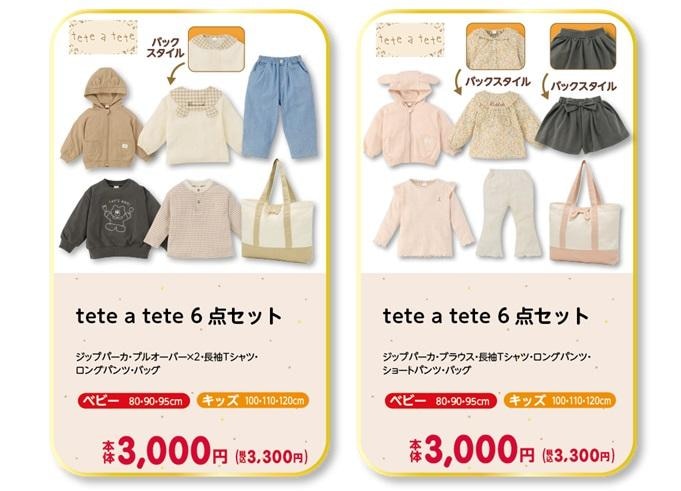 シック&トラディショナルをベースに、形と色にこだわったスタイルを提案する「tete a tete」。福袋は2パターンあります。