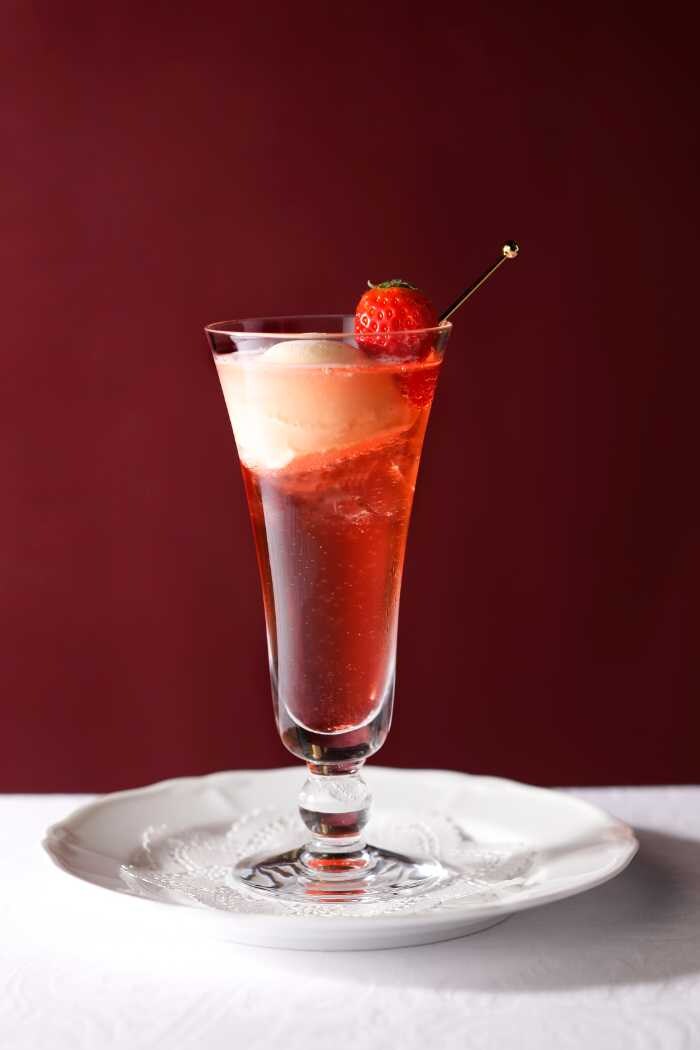 軽やかな一杯を楽しみたい方には、「香川県産“さぬきひめ”のアイスクリームソーダ」1,300円がおすすめ。