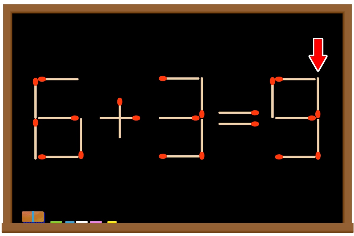 「9」の縦マッチ棒を1本、「5」に移動させて「9」を作る。