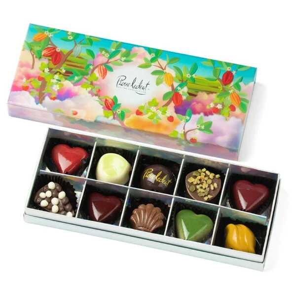 <シャトー・エトワール>2段10個入4,320円は、プラリネやキャラメル、ストロベリー、シャンパンやラズベリーなど果実味豊かな詰め合わせ。