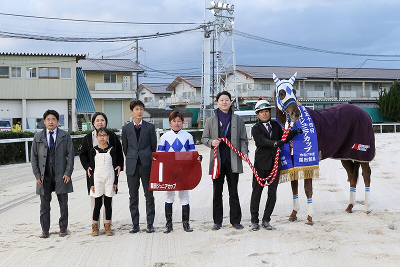 12月31日、園田競馬場で行われた11R・園田ジュニアカップ(2歳・ダ1700m)は、小牧太騎乗の2番人気、ゴッドフェンサー(牡2・兵庫・盛本信春)が快勝した。1.1/4馬身差の2着に1番人気のリーガルタイム(牡2・兵庫・柏原誠路)、3着に3番人気のサザンウォリアー(牡2・兵庫・保利良平)が入った。勝ちタイムは1:53.2(良)。