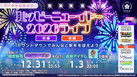 バーチャルライブにて「ハッピーニューイヤー2026ライブ」を開催いたします。「ハッピーニューイヤー2026ライブ」は前編・後編の2つに分かれての開催となります。