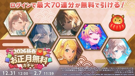 ![『プロジェクトセカイ カラフルステージ! feat. 初音ミク』イベント「新年言祝ぐ、祈りの舞」、「[2026新春]ブルームフェスティバルガチャ」開催!](https://assets.mama.aacdn.jp/contents/248/2026/1/1767364242326_zi75ppc4wj.jpg?maxwidth=800)