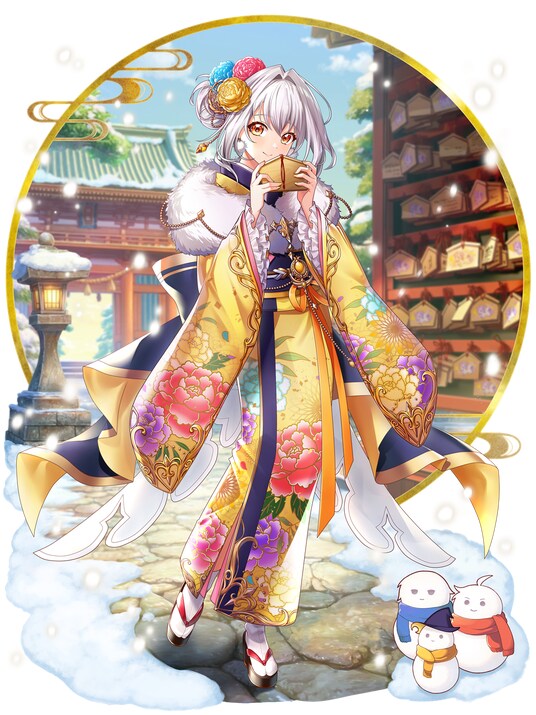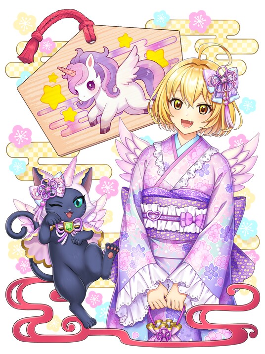 期間中の初回ログイン時にウィズより新年のご挨拶がございます。描きおろしのウィズのイラストを使用しており、マイページ専用精霊としてミッションよりお受け取りいただけます。