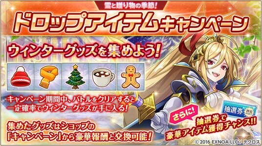 期間中、バトルをクリアすることにより一定確率でウィンターグッズが手に入ります!
