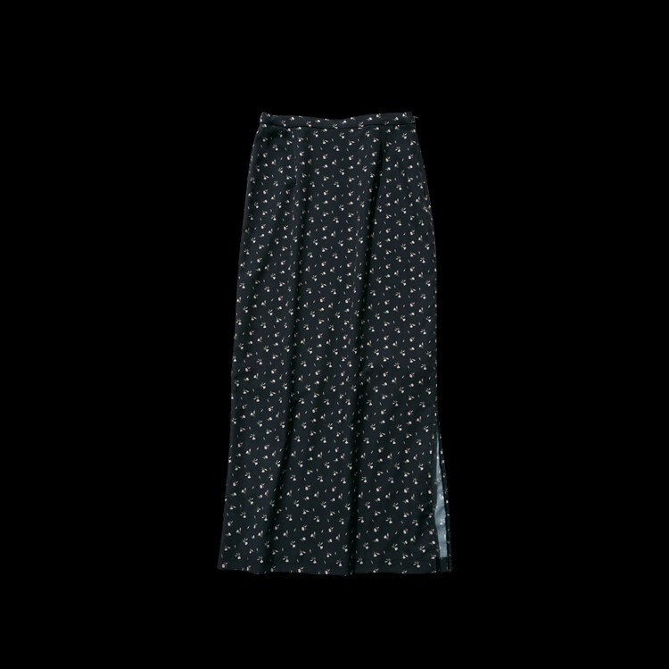 シンプルなニットに花柄で甘くのバランスがモテ女子の鉄則♡ 小物に差し色を取り入れて脱ブナンにきめて◎。
