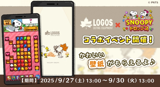 爽快パズルゲーム『スヌーピードロップス』でコラボ限定壁紙がゲットできる「スヌーピードロップス×ロゴス」コラボイベントに、ぜひご参加ください。