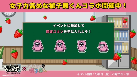 イベント期間中は特別なイベントステージが解放されます。プロジェクトリーダーとして立ちはだかる獅子原くんの体力を削り切ることでステージクリアとなり、イベントアイテム「いちご」を獲得できます。獲得した「いちご」はショップで限定報酬と交換が可能です。