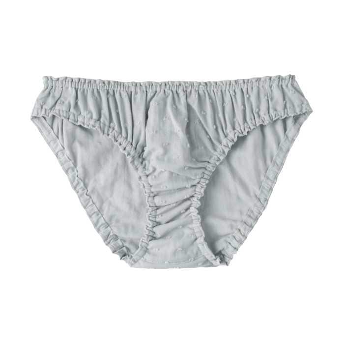 オーガニックコットン100%の二重ガーゼをベースに、ドビー織りでドット柄の立体感をプラス。やわらかく空気を含むような軽さと、さらりとした通気性の良さが特長です。