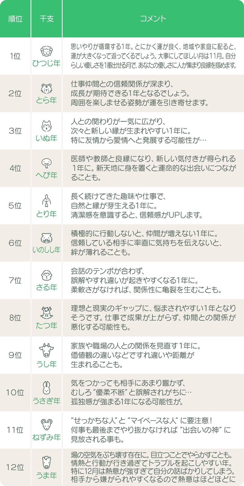 - 干支別に見る、出会い運ランキングを発表!