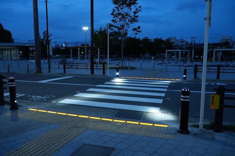 6月23日、大阪府守口市の大枝公園前に歩行者の安全対策として地面が光る「埋込型信号」が日本で初めて設置されました。