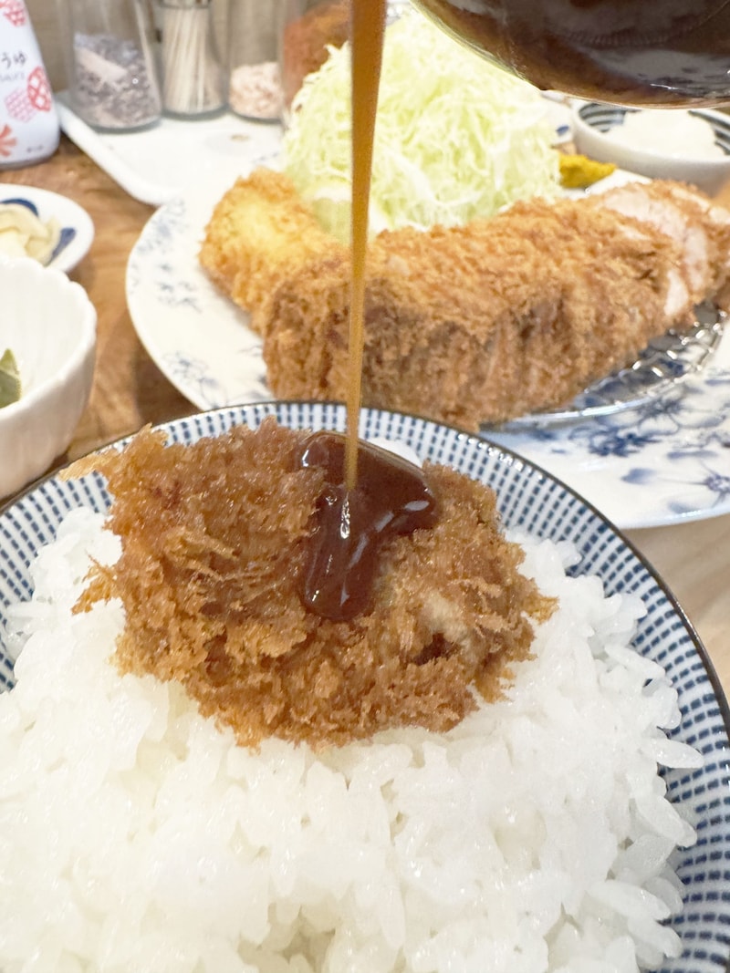 2種類ものとんかつが連なっています。