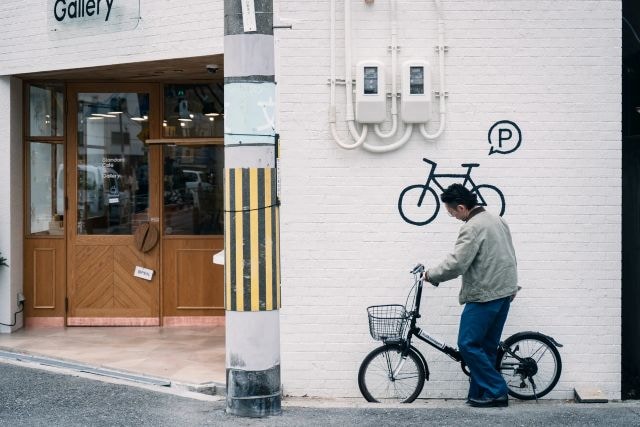 また、駐輪場が設けられているので自転車での来店も安心。壁に描かれた自転車マークが目じるしです。