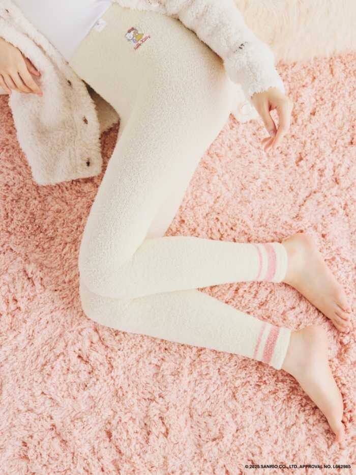 コラボコレクションは全3型が展開。ハローキティは「もこもこ着圧ナイトレギンス」(4,400円/M・L・カラーIVR)、「もこもこ着圧ナイトオーバーニーソックス」(3,300円/M・L・カラーIVR)、「もこもこ腹巻付きパンツ」(3,300円/M・L・カラーIVR)の3種。