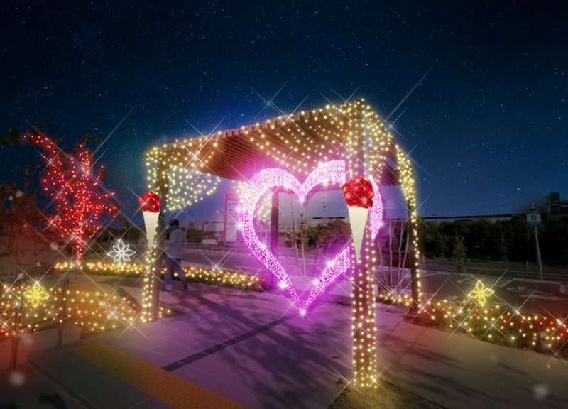 園内には光の回廊やフォトスポットが点在。なかでもハート型フォトスポット「Wishing Heart」はそれぞれの“願い”を形にできるスポットとして、毎年大人気のエリアです。その道中を盛り上げる「Wishing Road」も見逃せません!