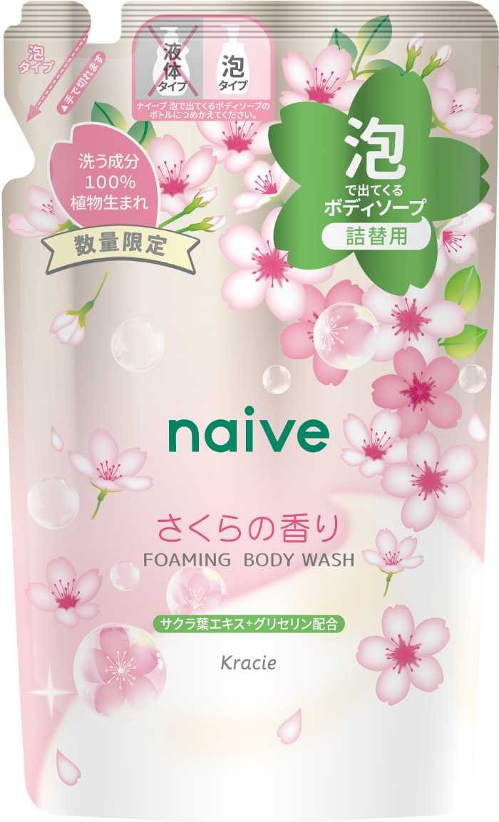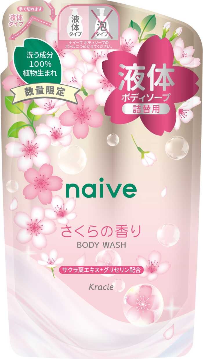 「ナイーブ ボディソープ(さくらの香り)」はポンプ530mLと詰替用360mLを展開。