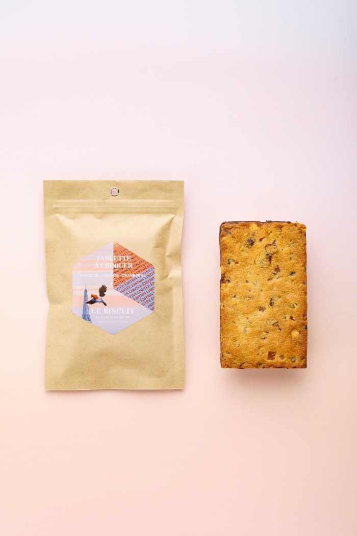 バレンタイン限定の「タブレット・ビスキュイ フリュイ&ショコラ」(2,808円)は、一枚でも満足感のある大きなビスケット。