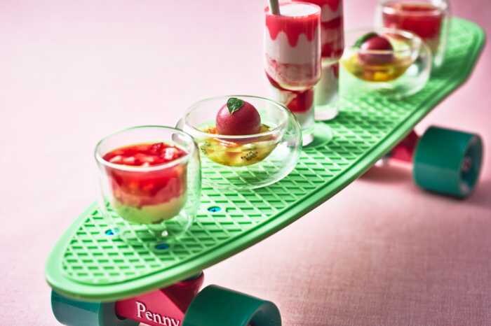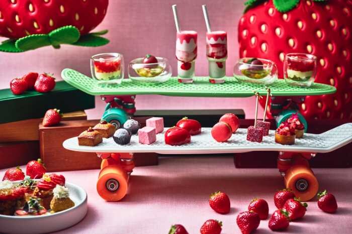 「ストロベリータルトラズベリーアーモンド」「ストロベリーとルバーブのフィナンシェ」「ストロベリーパンナコッタ柚子ヘーゼルナッツ」「ストロベリーとレモングラスのミネストローネ~デザートスタイル~」「ストロベリーホワイトチョコレートショット」「トリュフとシャンパンのボンボンショコラ」「ストロベリーとピスタチオのマカロン」「ストロベリーパート・ド・フリュイ」「ストロベリーとピスタチオのハートムース」「ストロベリーマシュマロ」と、どれも甘酸っぱい苺の魅力がギュッと詰まったラインアップです。