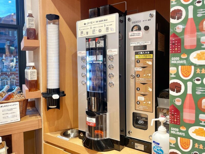 ここで味わえるのが、レジ横のセルフ式コーヒーマシンで購入できるこだわりのコーヒー。価格は1杯100円と、物価高の時代にありがたい安さ......。