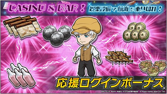 「CASINO & BAR!娯楽設備で航海を乗り切れ! 応援ログインボーナス」開催