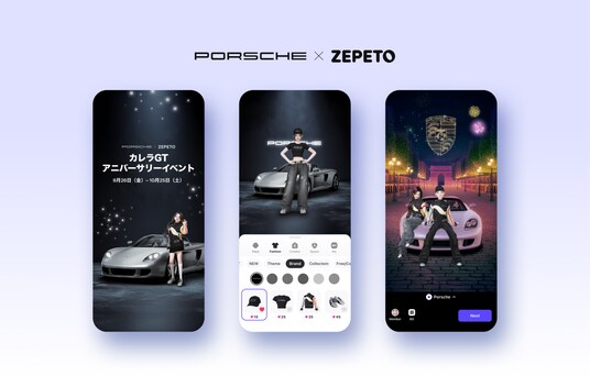 今回の取り組みでは、ポルシェがパリ・シャンゼリゼで実施するポップアップイベントと連動し、オンライン上でも世界中のファンが参加できる没入型体験を提供します。ユーザーはZEPETO内に設置された3つのインタラクティブブースで「Carrera GT」の3Dモデルに触れ、ストーリーテリング型の体験や写真・映像制作を楽しむことが可能です。