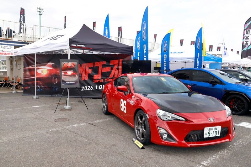 2025年9月28日、茨城県の筑波サーキットで開催された「ハイパーミーティング」では、BLITZがコーディネイトを手がけた片桐夏向の86レプリカモデルが展示されました。この実車こそが、三間さんが所有する収録用の86です。