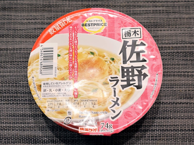 4位はベストプライス byトップバリュの「栃木佐野ラーメン」。イオンのプライベートブランドで、製造は明星です。販売価格は148円!