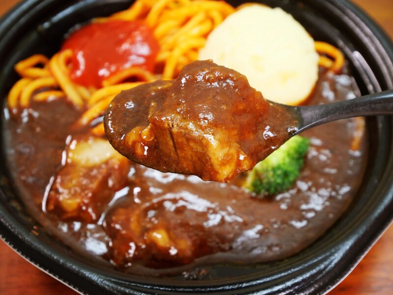 特に感動したポイントは、ビーフシチューの滑らかな食感と、塩味に頼らないディープな旨味。しょっぱくないのにコクが深いので、どんどん食べ進められるし、どんどん食べたくなる。そして特に注目してほしいのが、牛肉のとろけっぷりと肉汁濃度。