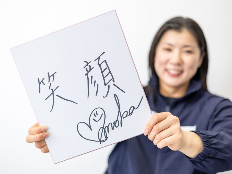 村岡には常に自身に掲げている言葉がある。「笑顔」だ。競技前には口角を上げて臨むルーティンもある。