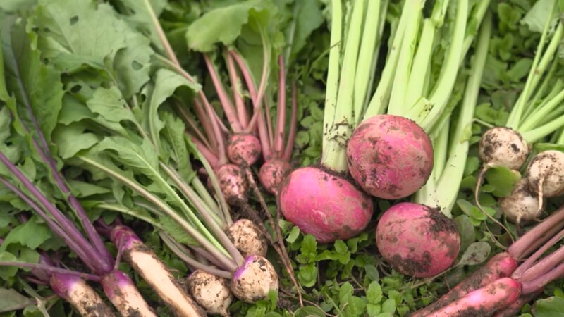 はいださんは、滋賀・高島市で赤カブをはじめたくさんの野菜を作っている「みなくちファーム」へ。一面に広がる畑を見て「全部カブですか?」と驚くはいださん。頷いた農家の水口さんは、ここで7種類のカブを育てている。「中でもオススメは、高島のご当地カブの『万木(ゆるぎ)かぶ』です」と水口さん。万木かぶは高島市の万木地区原産で、風味の強い赤カブ。「漬物にしても味がボケない、カブ本来の味がする」品種だという。農薬や化学肥料を使用せず自然に近い育て方で本来の味を引き出している。