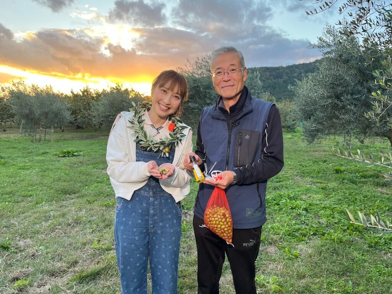桂田さんたちは、オリーブ栽培を活かしたイベントも開催し、地域活性化にも貢献している。「私たちはここで育ちましたので。地元に恩返しという意味で、新しい人との交わりによって活性化させ、持続可能な地域づくりがやりたい」と桂田さん。高島で人々の話を聞き、はいださんは「すべてにおいてみんなが一つになっているのを感じましたね」。美しい夕焼けをバックに、オリーブの林で桂田さんと楽しくダンスし、笑顔いっぱいでロケを終えた。