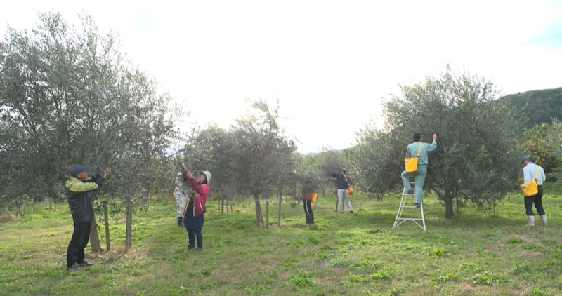 赤カブと酒粕のスープを「すごく自然な甘みが出てる」と味わったはいださん。アクセントのオリーブオイルも高島でつくられたもの。はいださんは、地元にあるオリーブの栽培地へ。高島市は柿の産地だが、だんだん柿農家が減り、耕作放棄地が増加していた。そこで、その土地を使って7年前からオリーブの栽培をスタート。高島は水はけの良い扇状地。地元の桂田さんは「オリーブは水が嫌いなんですよ。ですから高島はものすごく栽培に適してたんです」と話す。