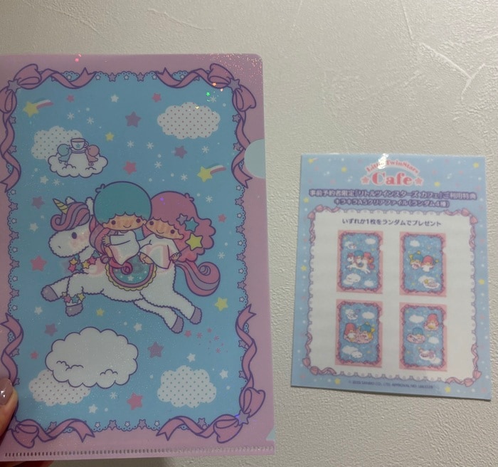 事前予約者限定カフェ利用特典として事前予約(税込660円/1名)をご利用で、メニューをご注文いただいた方に「キラキラA5クリアファイル(ランダム4種)」が1枚プレゼントされます。