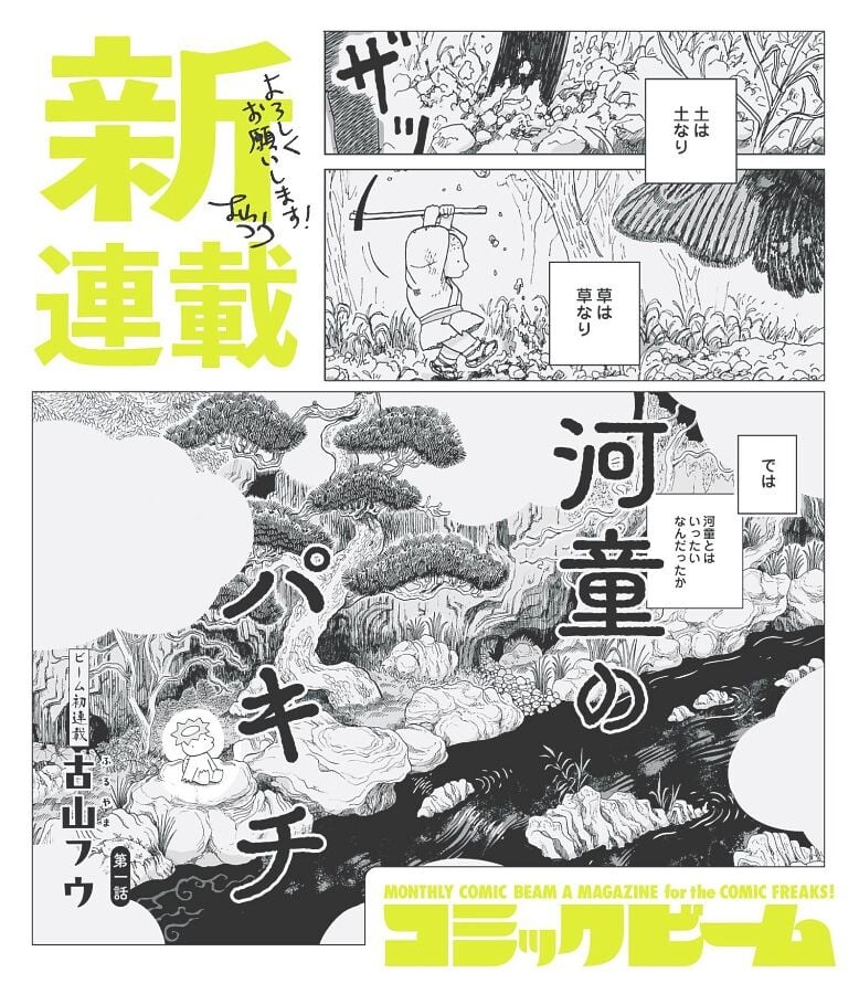 「月刊コミックビーム」にて新連載『河童のパキチ』がスタートした(古山フウさん提供)