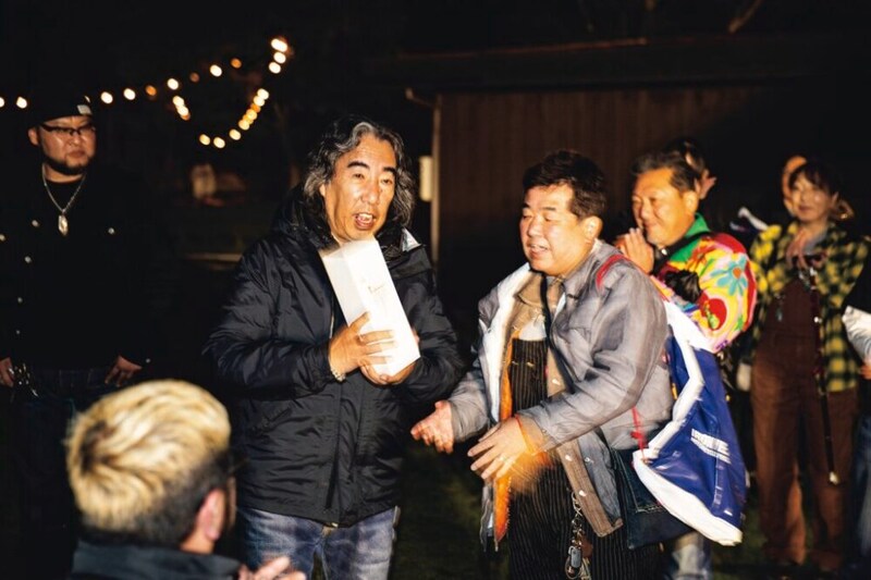 キャンプ2日目の10月26日は原木さん69歳の誕生日。毎年このイベントの際に盛大に祝っている。じゃんけんの後にはケーキや常連のお客さんからプレゼントが贈られた。