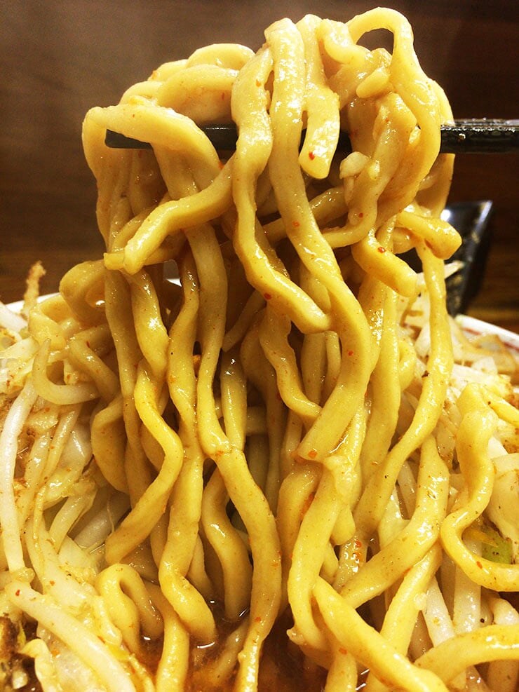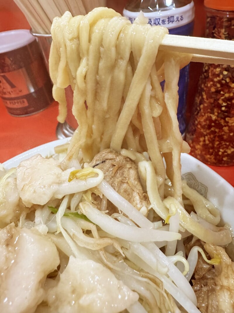 唯一無二のバキボキ感を誇る麺は、まさにラーメン二郎吉祥寺店の名物と言っても良いだろう。