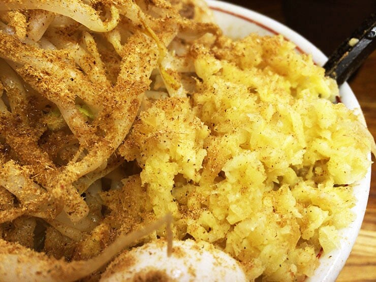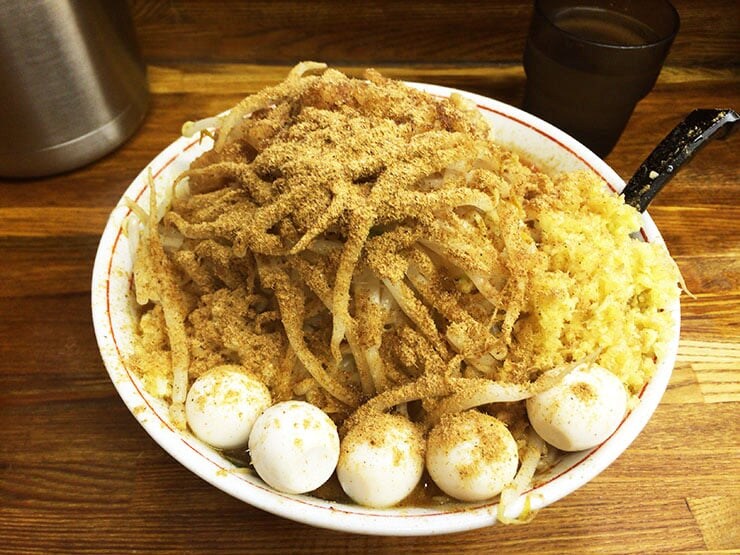 ラーメン二郎新小金井街道店のラーメンは盛りが豪快。