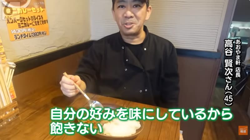 大阪・守口市、京阪の土居駅から徒歩7分の「あおやま軒」は、ハンバーグとカレーのお店。開店の午前11時前には行列ができる人気店です。平たく伸ばした独特の形が特徴のハンバーグを焼くのは、店長の高谷賢次さん(45)。店は2年前にオープンしましたが、それまでの経歴は波乱に満ちています。