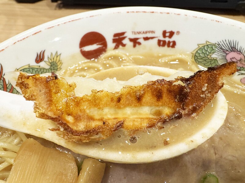 たっぷりとラーメンスープを含ませて食べると、餃子のコクが高まるのです。