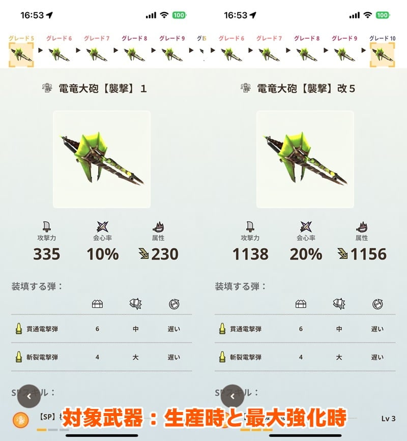 ・武器:電竜大砲【襲撃】、電竜大砲【襲撃】改