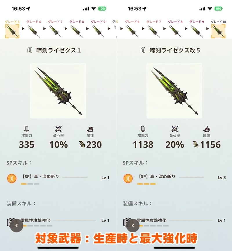 スキル“見切り”で会心率を上げたり、スキル“雷属性攻撃強化”でダメージを底上げするのもよいでしょう。