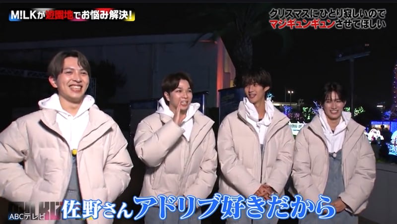 なお、“3080(さんぱち)コンビ”佐野と山中が渾身の演技を披露したM!LKのABCテレビ初冠番組『M!LKじゃん!』は、12月23日深夜(日付が変わって12月24日クリスマスイブ)に放送された。3080サンタからのクリスマスプレゼントと言える甘~い愛の言葉に、多くのファンがマジぎゅんぎゅん!