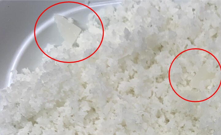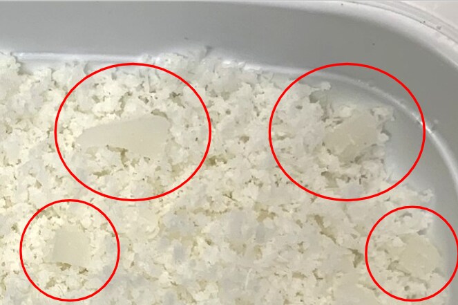 今回はほぼ全部すりおろしましたが、実際にはお餅の3分の1ぐらいは↓画像のような2~5ミリ角に切った細切れの欠片にするのがおススメです。