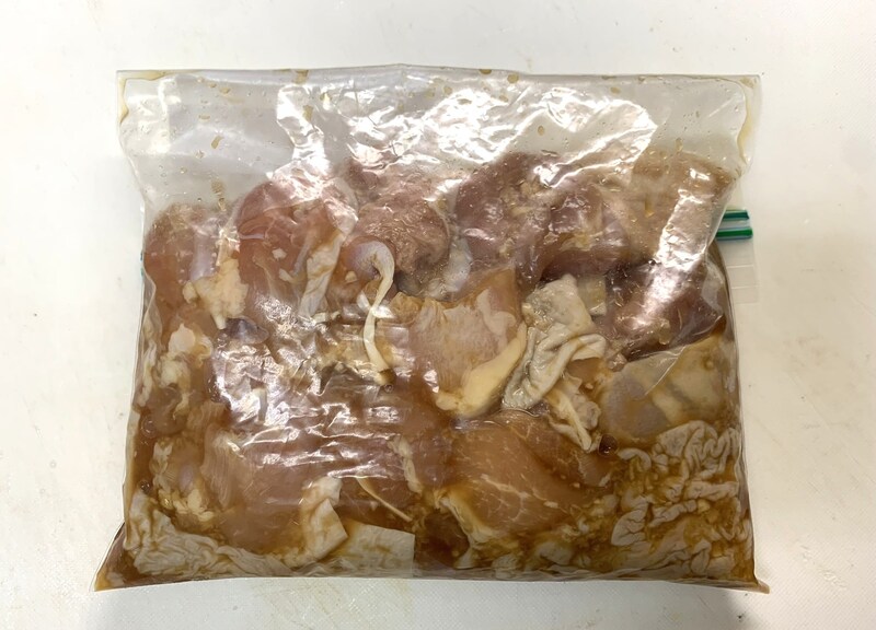 ジップロックに材料を入れてひとまとめにしてから揉みこむと、洗い物も少なくて楽です!