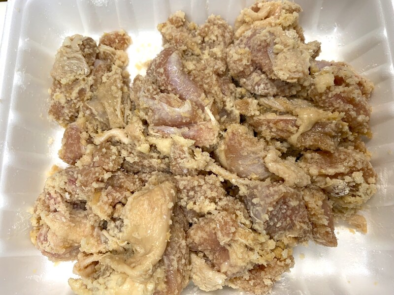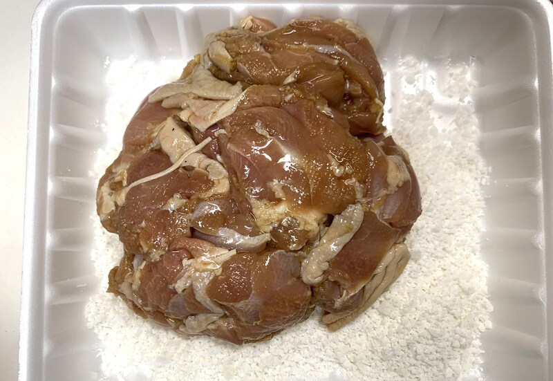⑦あとは油で揚げるだけです。普通の唐揚げよりも焦げやすいので注意です。