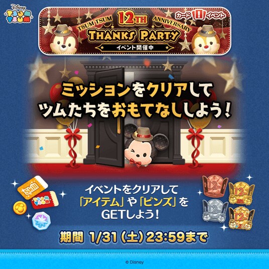 ■ゲーム内の新イベント「TSUM TSUM 12th ANNIVERSARY THANKS PARTY」開催中